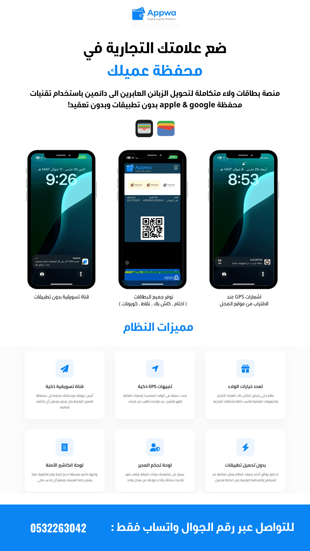 نظام ولاء ذكي (SaaS) متكامل يعمل عبر Apple Wallet