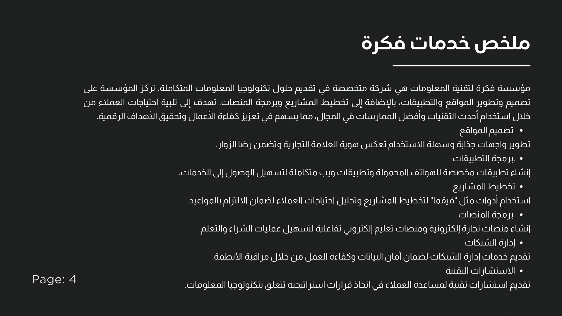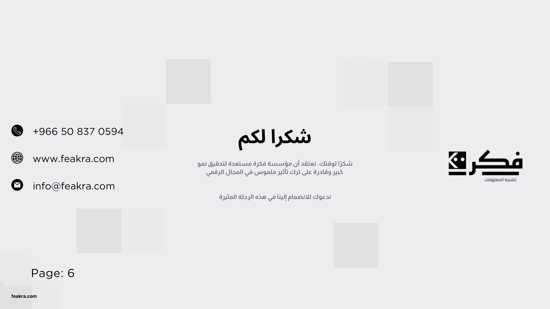 مؤسسة متخصصة في تطوير المواقع الإلكترونية والتطبيقات باستخدام لغات برمجية معززة. بصفتها مزود خدمات تطوير الويب والتطبيقات، تركز فكرة على إنشاء حلول رقمية مبتكرة وفعالة لعملائها. نبحث عن شريك إستثماري لتوسعة أعمالنا وتكوين علاقات وقاعدة عملاء جديدة وتنمية المنشئة بشكل أسرع www.feakra.com